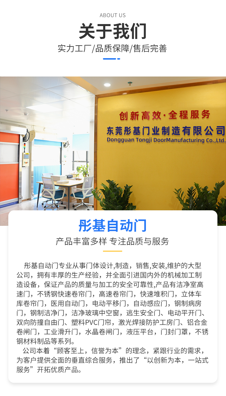 您好:歡迎光臨 東莞彤基門業(yè)制造有限公司 官網(wǎng)!專業(yè)生產(chǎn)快速卷簾門 工業(yè)提升門