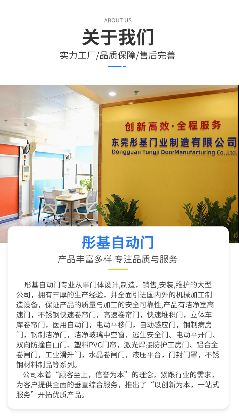 您好:歡迎光臨 東莞彤基門業(yè)制造有限公司 官網(wǎng)!專業(yè)生產(chǎn)快速卷簾門 工業(yè)提升門